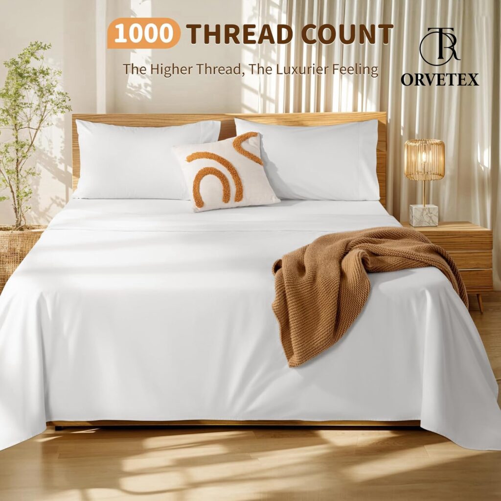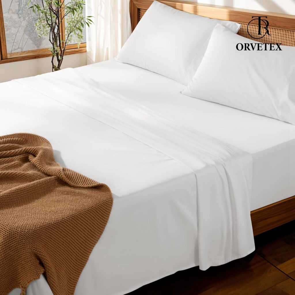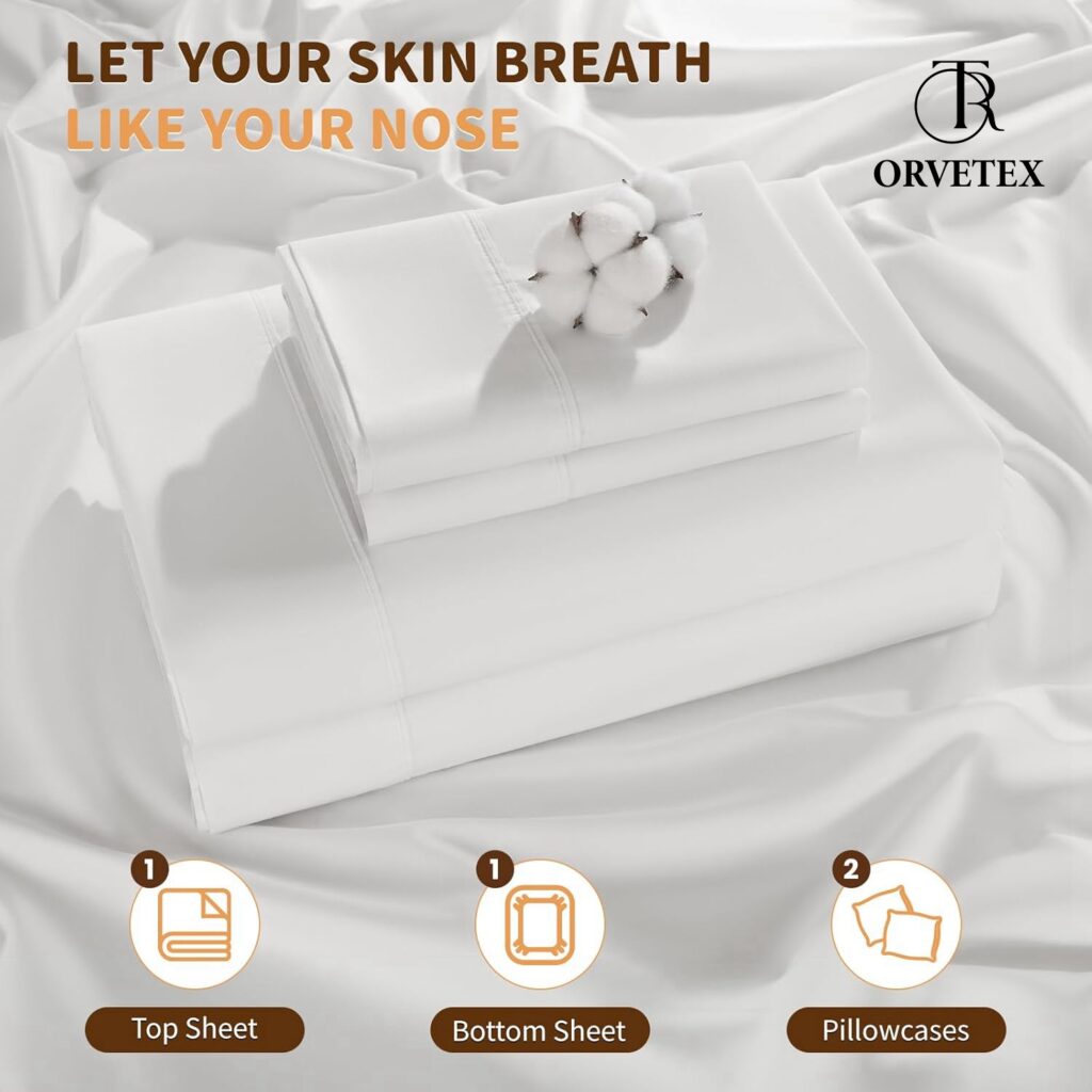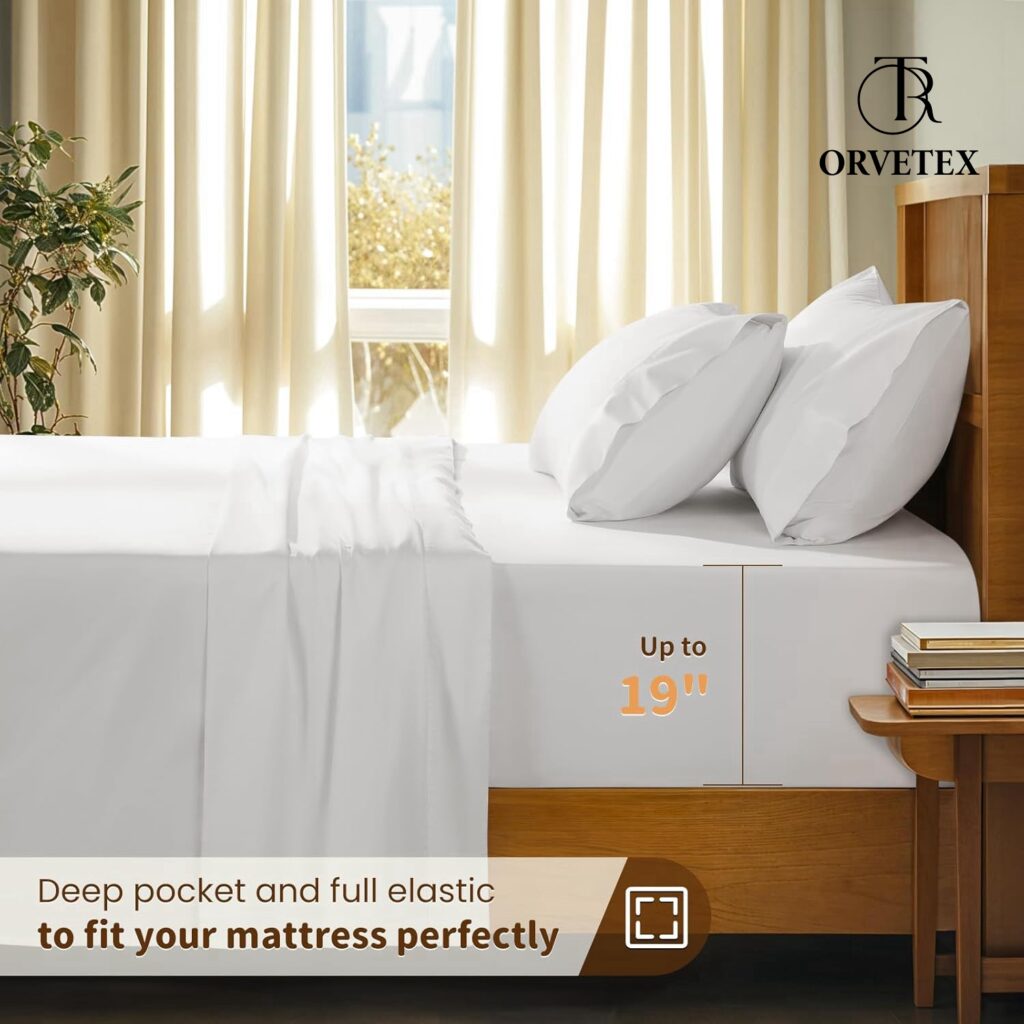 This 100% pure cotton 300-thread count bedding set is crafted from high-quality long-staple cotton, offering a soft, breathable, and moisture-wicking feel. It keeps you cool in warm weather and provides a warm, cozy feel in colder seasons, making it suitable for year-round use. The deep 19-inch fitted sheet design accommodates various thicknesses of hotel mattresses and mattress toppers, with a full elastic band around the edges to ensure it stays in place and wrinkle-free throughout the night, maintaining a neat and elegant appearance.